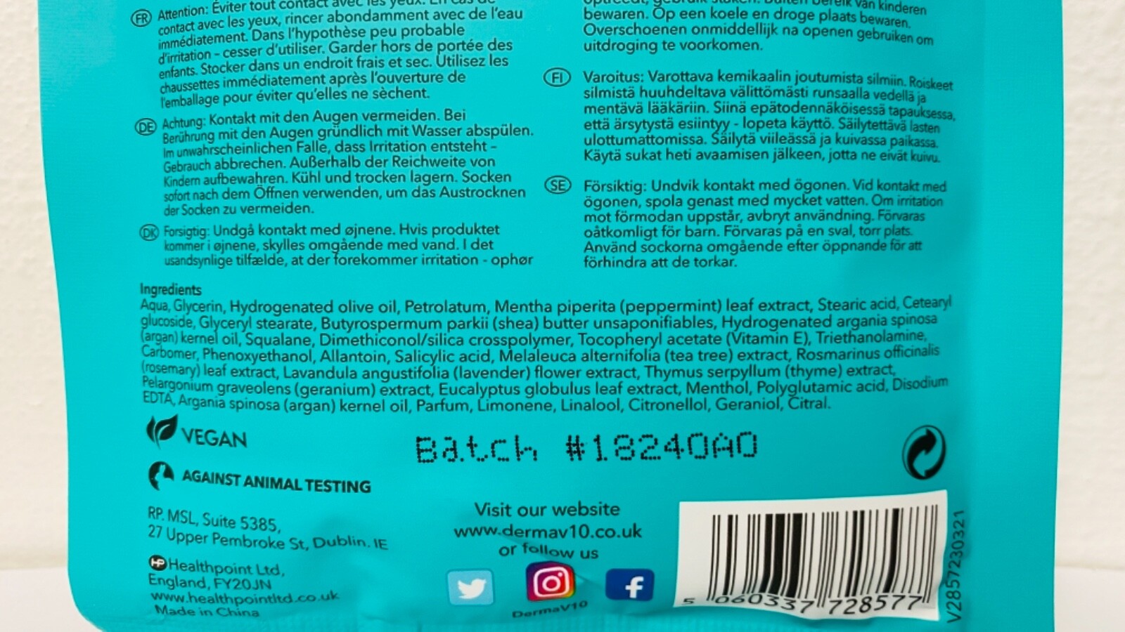 Derma V10 Deep Moisturising Foot Pack with Moroccan Argan Oil & Vitamin E