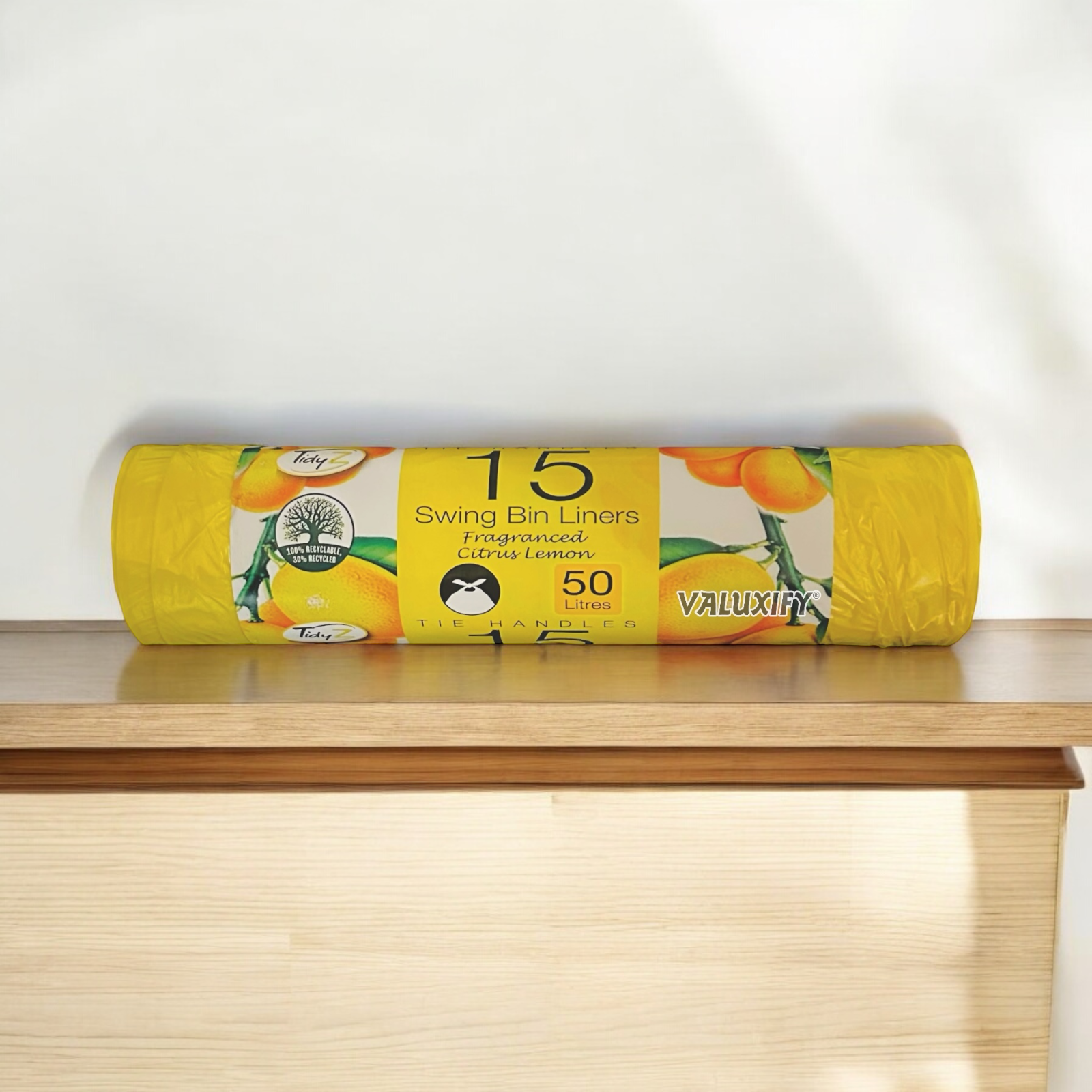 Swing Bin Tie Handle Liners with a refreshing Lemon Zest fragrance.