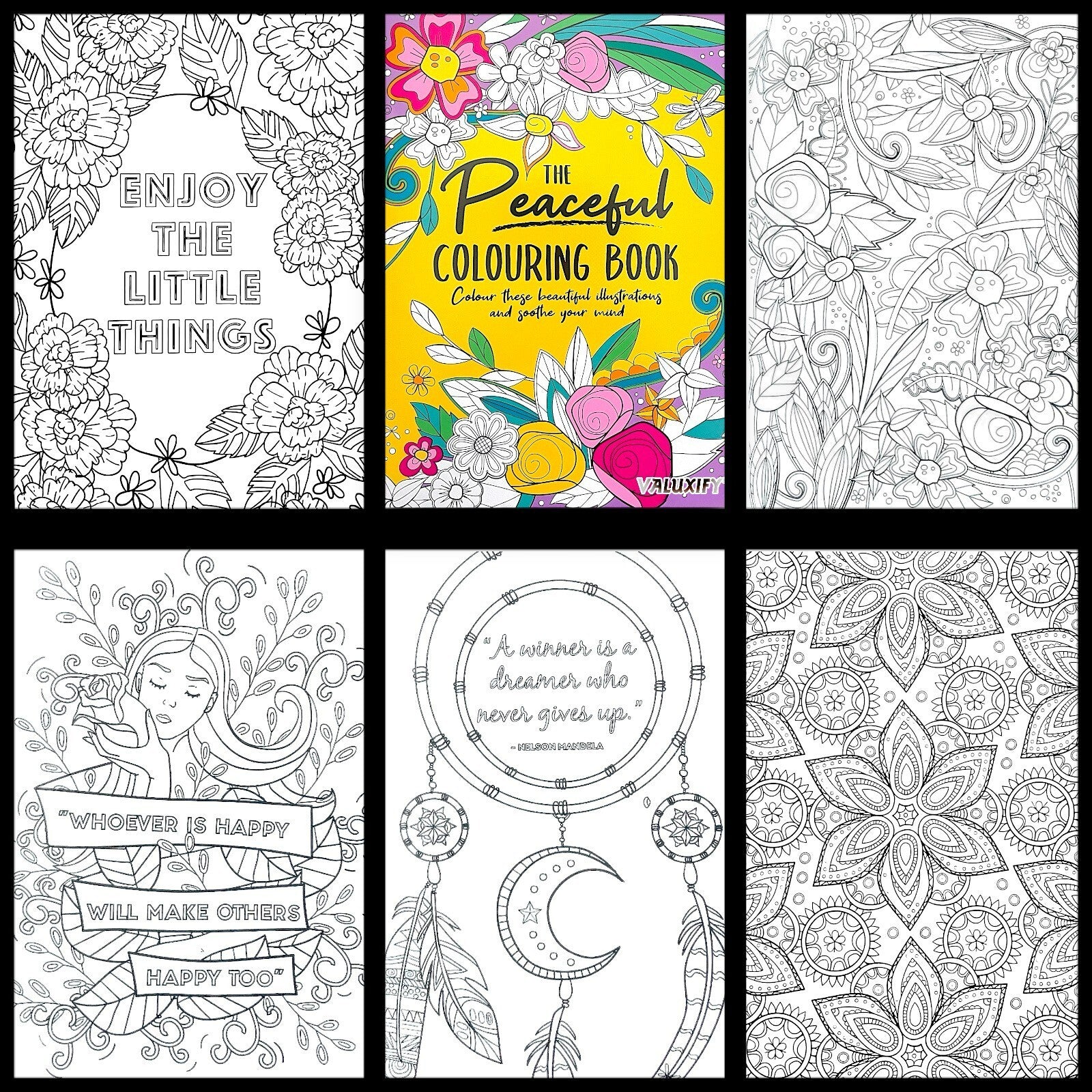 ANTI STRESS PEACEFUL ADULT COLOURING BOOKS MIND RELAX COLOUR THERAPY A4