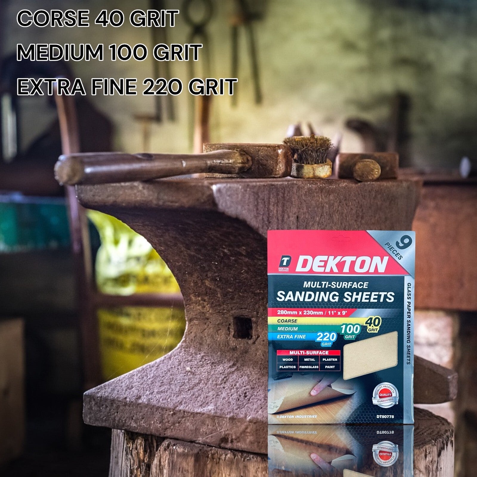 Assorted Sanding Sheet Multi-Surface, 9 Sheets, 280mm x 230mm, 40, 100