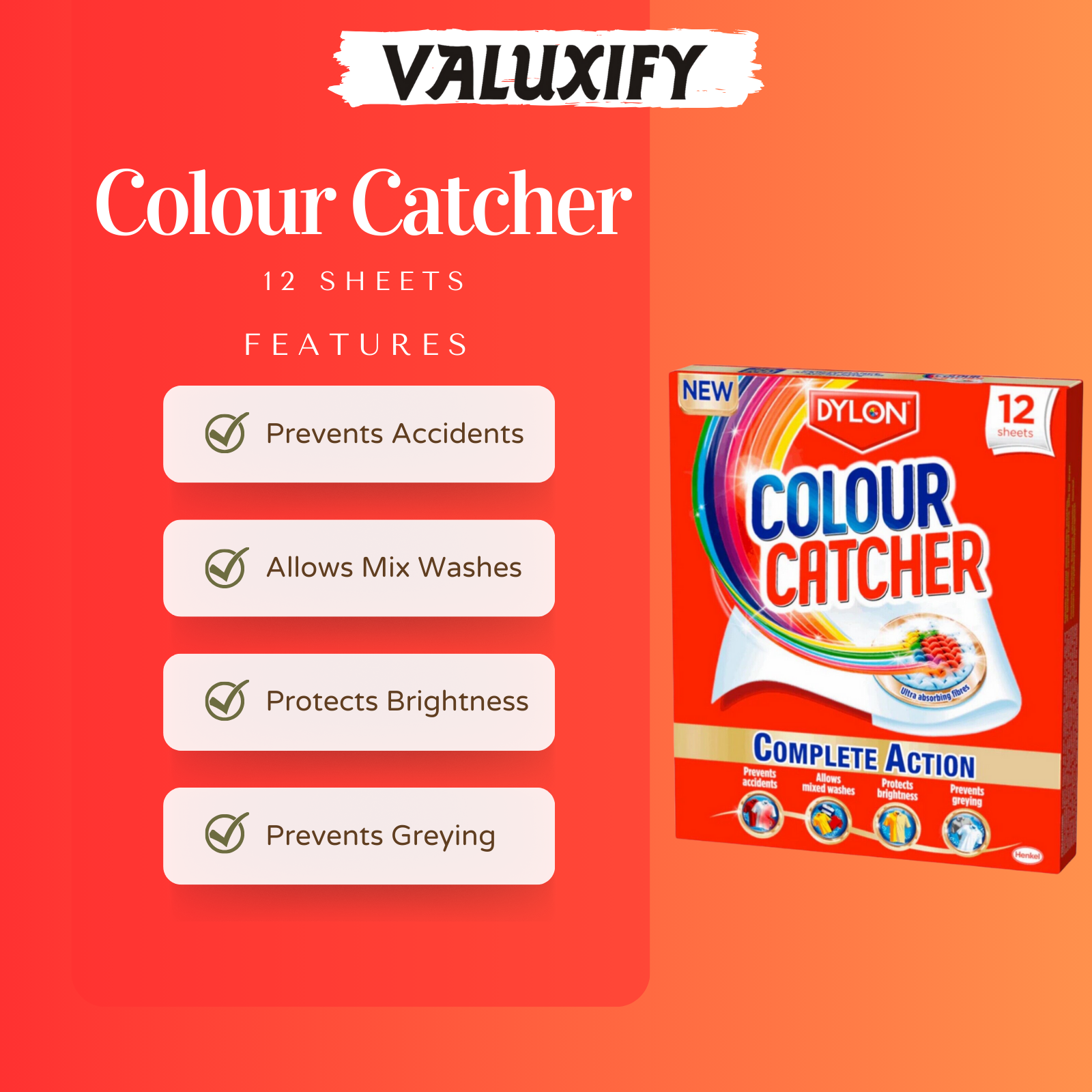 - Prevents Greying: Bid farewell to the dreaded grey haze that can dull your fabrics over time. Colour Catcher Complete Action preserves the integrity of your whites and prevents them from turning dingy.