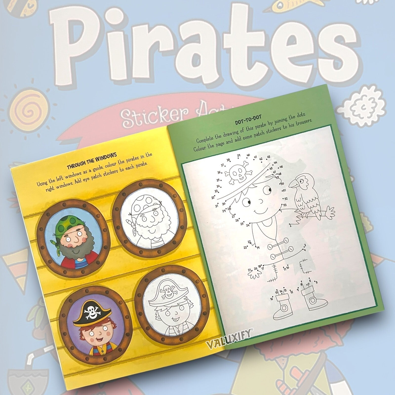 Pirates Boys Kids Children' Sticker Colouring Activity Book A4 Over 50 Stickers
