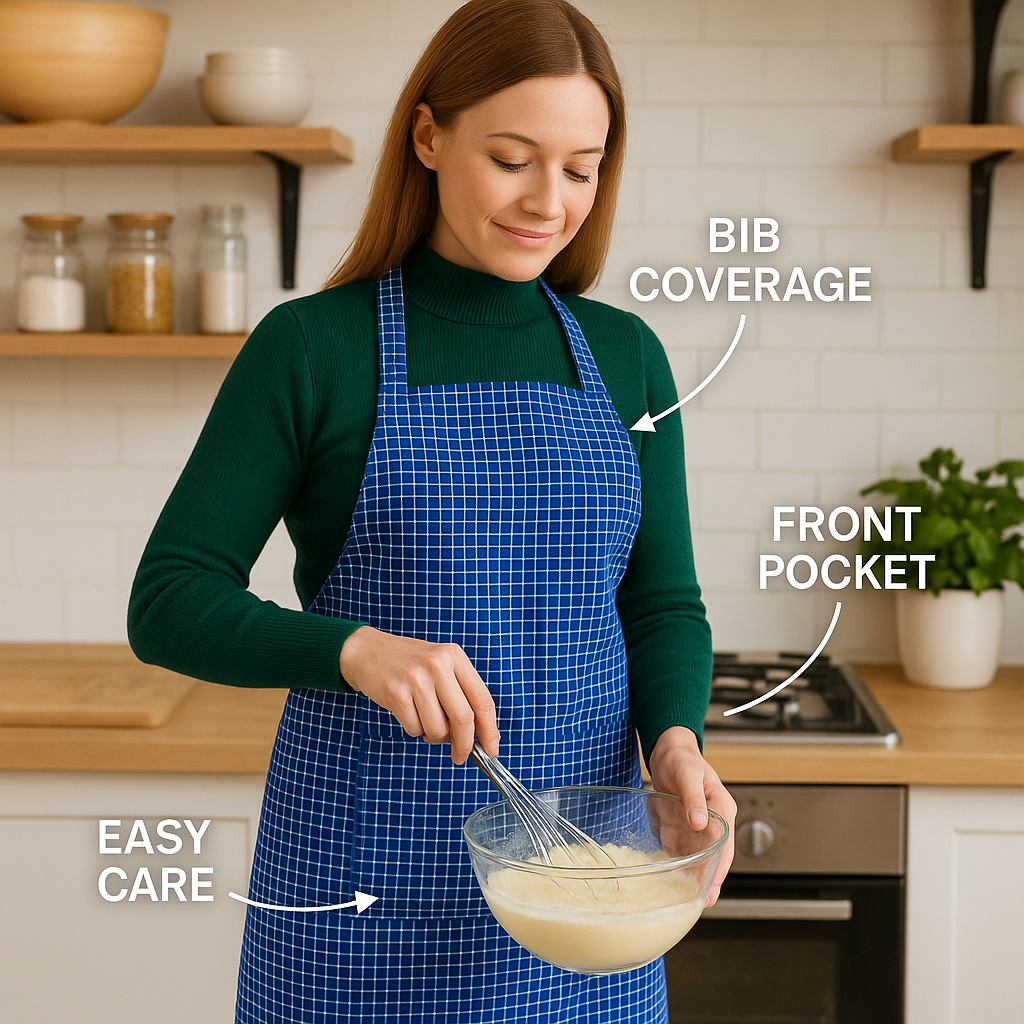 Unisex Adult Apron – Blue Check | Polycotton Kitchen, Cooking & Catering Apron