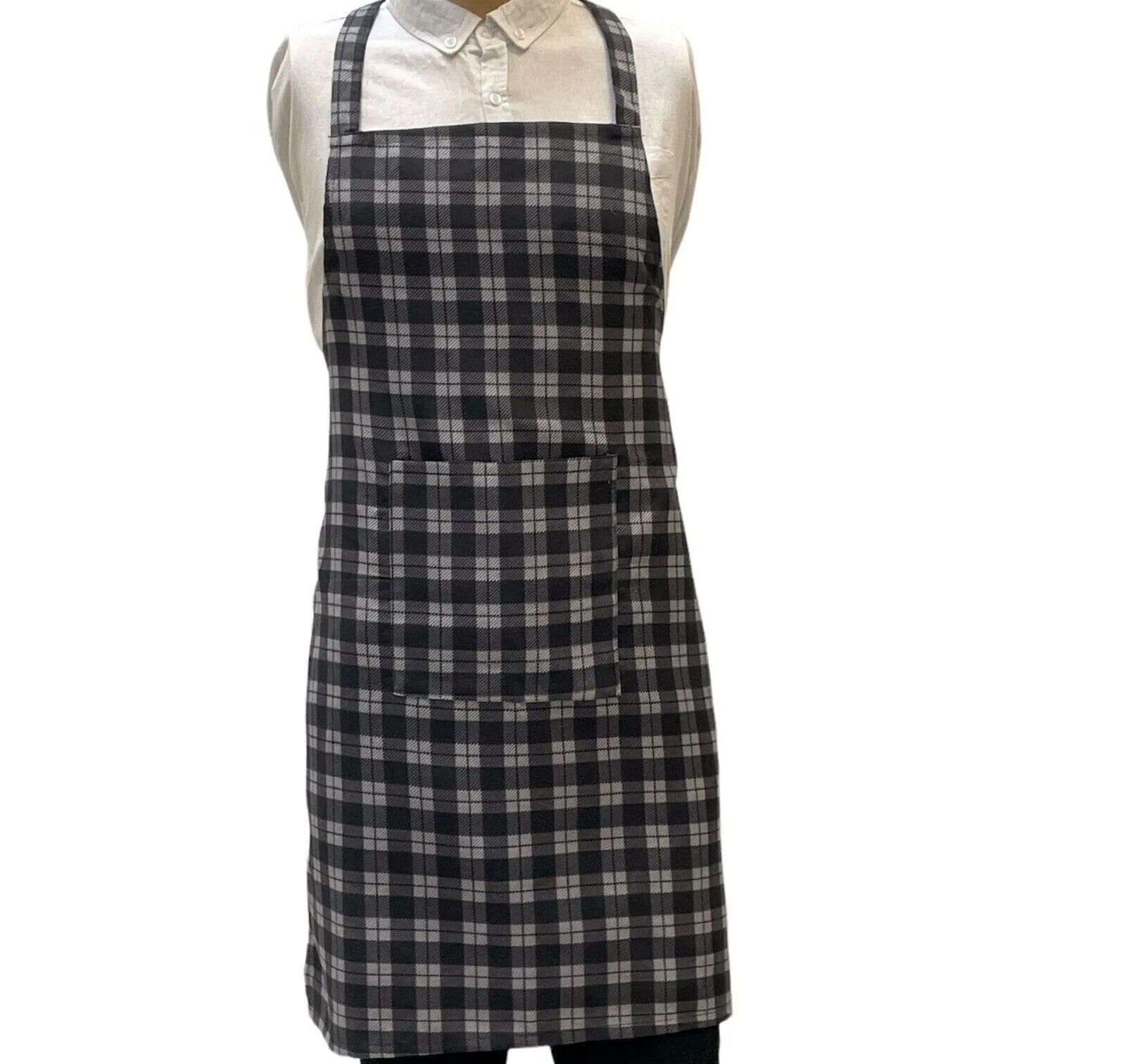 Unisex Adult Apron – Grey Check | Polycotton Kitchen, Cooking & Catering Apron
