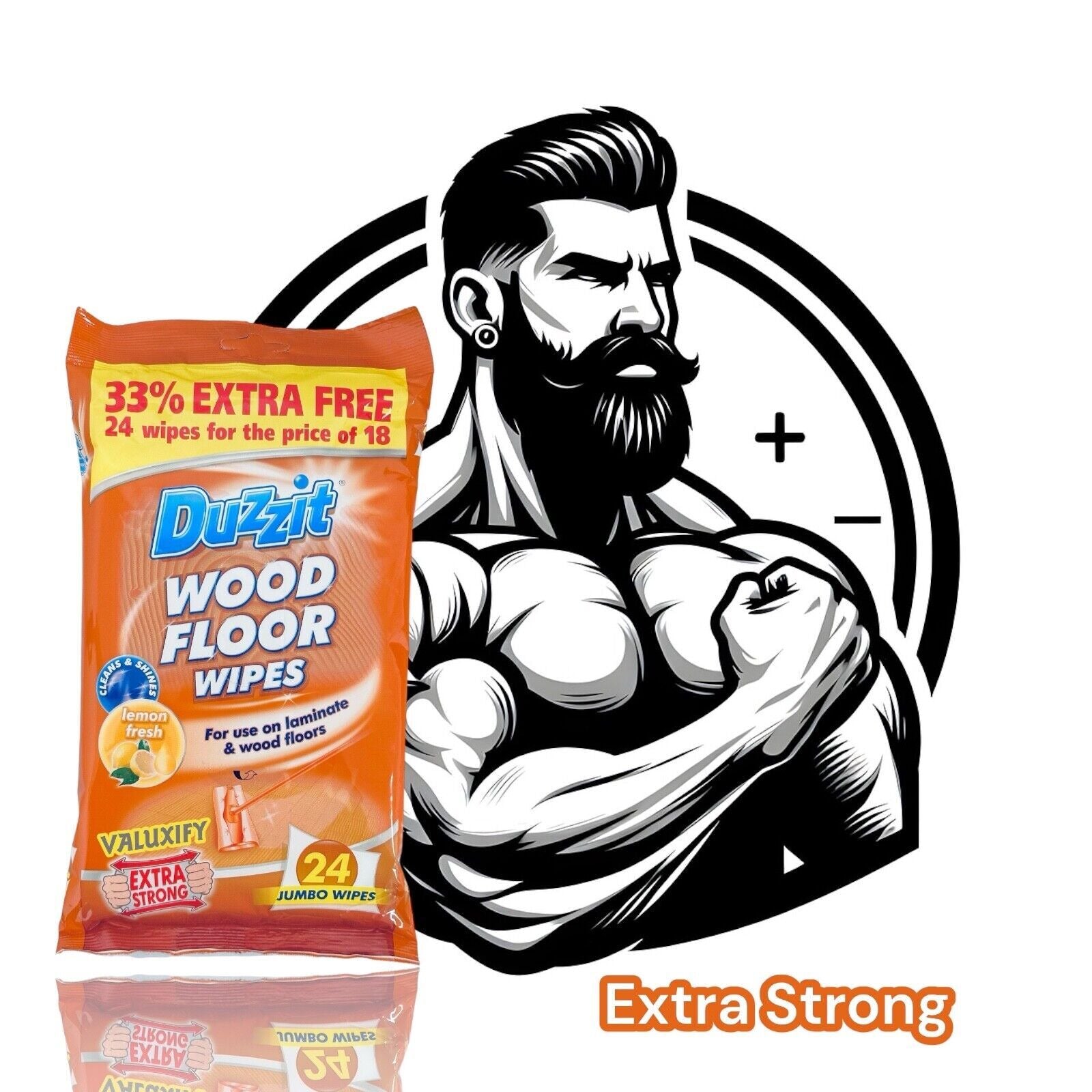 Duzzit Wood Floor Wipes, the ultimate solution for effortlessly cleaning and maintaining your laminate and wood floors. These extra strong jumbo wipes are designed to provide a thorough clean while leaving behind a refreshing lemon fresh scent that will invigorate your living space.